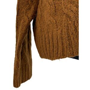This American Eagle cable knit sweater provides warmth & style w/its brown hue & V-neck design. The hoodie adds cozy style which makes it ideal for layering. Perfect for staying cozy in colder weather.