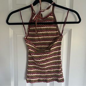 Scallop trim rib knit halter top by American eagle in multicolor stripe
