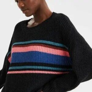 A versatile layering piece designed for comfort and style, this American Eagle sweater offers a relaxed fit with thoughtful design elements that elevate casual wardrobes. The chunky knit construction provides warmth while the strategic color-blocked stripes add visual interest and contemporary flair.