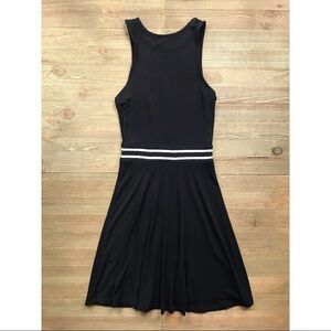 American Eagle Skater Dress. Black, stretchy fabric. Sporty white stripes on the waist. Sleeveless. Peekaboo cutout on the waist. Excellent condition, no signs of wear. Size XXS.