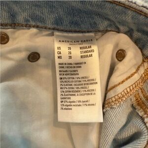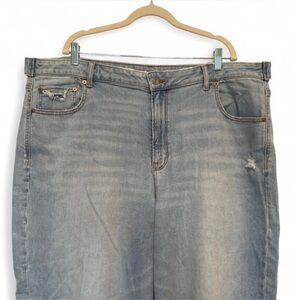 AE Dreamy Drape Stretch Super High-Waisted Baggy Wide-Leg Jeans with Distressed Hem, Light Wash, Plus Size US 20, Stretchy