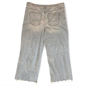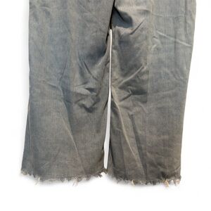 - Features: Distressed/raw hem, relaxed wide leg, distressed accents/rips on front pant and pocket, stretchy comfort fit