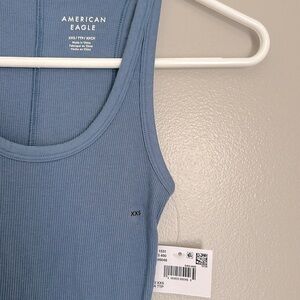AE Fitted Blue Ribbed Tank Top