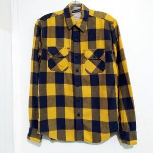 American Eagle Outfitters AE Flannel No 77 Men,s Yellow & Black Windowpane Flannel Shirt Sz S/P
