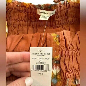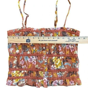 AE Floral Cropped Top With Thin Straps NWT Orange Stretch Small Bohemian