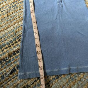 This 2010s American Eagle Outfitters henley top is a moody blue-gray and made from ultra-soft stretchy ribbed cotton with a flattering scoop neckline and full button front. Longline silhouette is perfect for pairing with low rise jeans or layering under cardigans. Channel major Bella Swan energy from Twilight, or go full Elena Gilbert in early Vampire Diaries. Also totally Hermione on a weekend in Hogsmeade. Tag says S/P (small petite) but super stretchy.