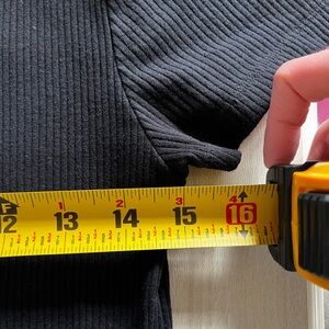 Good condition other than normal wear from washing. Noted in picture. Approx Measurements in picture. Shoulder to hem measurement is mid of shoulder on hanger to bottom. Size M. Black.
