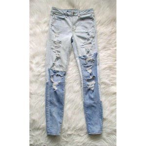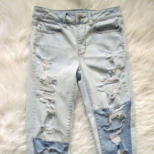 AE - Hi Rise Distressed Jeggings Two Tone Denim