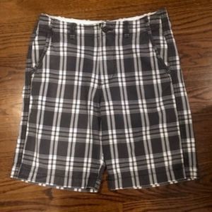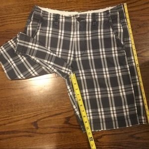 AE Longer Length Grey White Plaid Mens Shorts 32