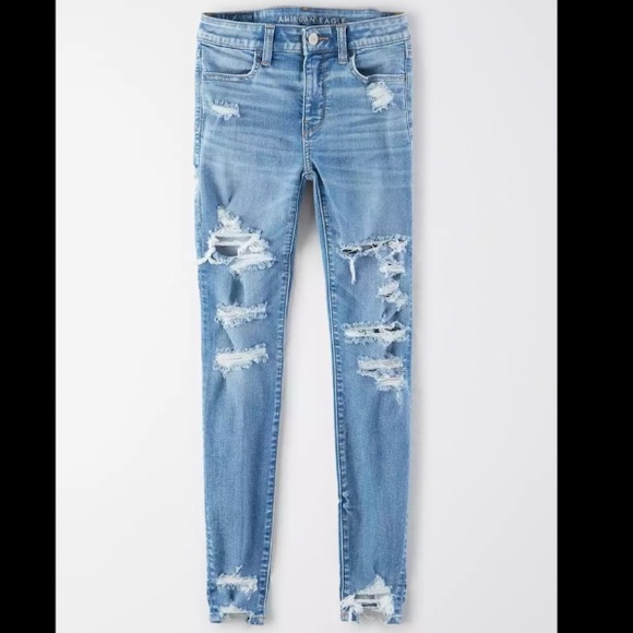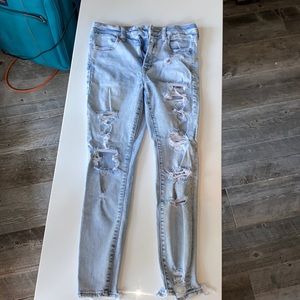 American Eagle high waisted Jeggings vintage washed out light blue color still great quality