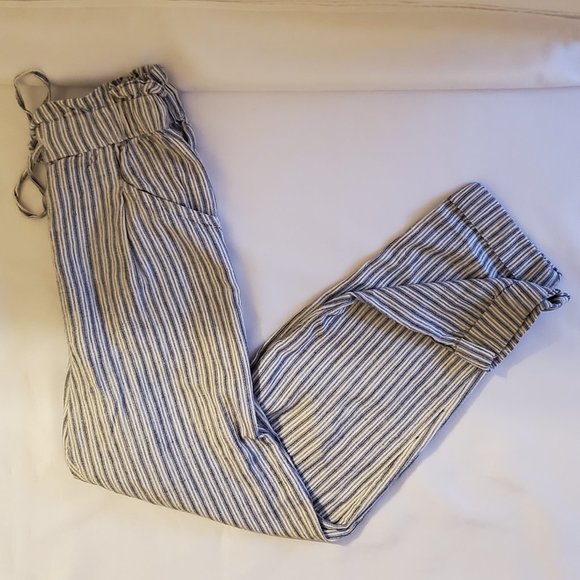 AE Outfitters Paperbag High Waisted Linen Blend Striped Tapered Pants Size XS