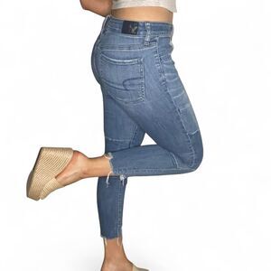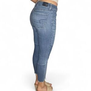 american eagle super stretchy two-tone denim high rise skinny jean