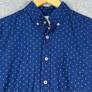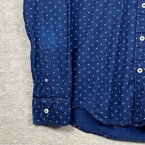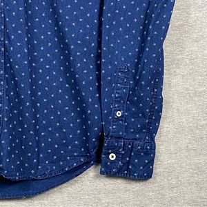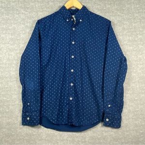 AE Premium Indigo Mens Blue/White Classic Fit LS Floral Button Down Sz S