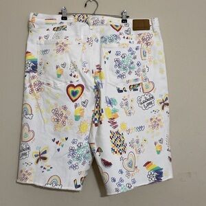 Vibrant shorts with rainbow and love-themed graphics. Perfect for a fun, casual look.