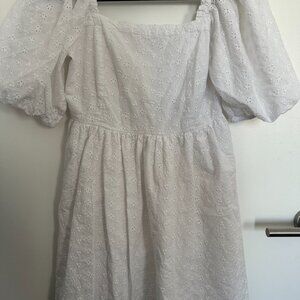 AE Puff Sleeve Eyelet Mini Dress in White (M)