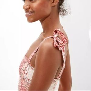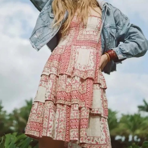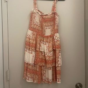 Cute patchwork AE mini dress with stretch bodice and tie sleeves. Worn only once