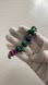 Add a pop of color to your outfit with this vibrant beaded charm bracelet. Featuring a mix of pink, green, and blue beads, this accessory is perfect for any occasion. The silver charms add a touch of elegance.