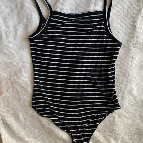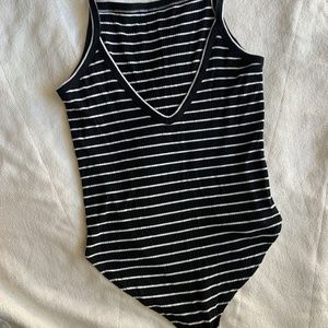 American Eagle black and white stripe, ribbed body suit. Lightly worn.