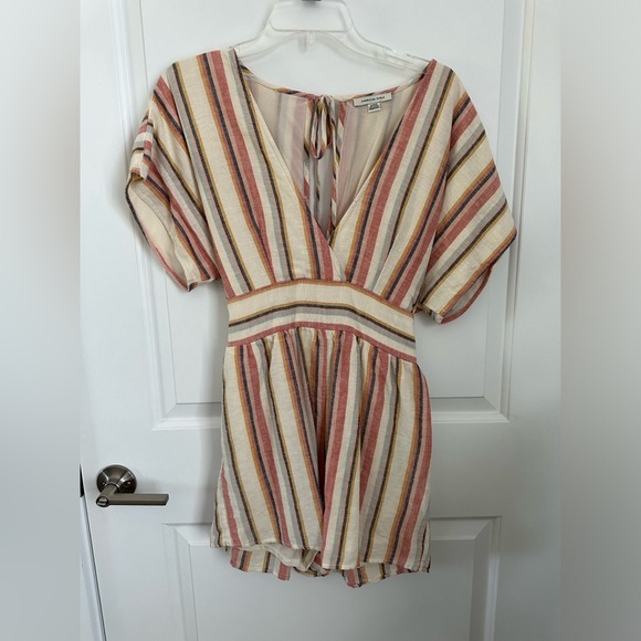 Medium, AE shorts rompers. Ties in the back at the top and waist. Has pockets!