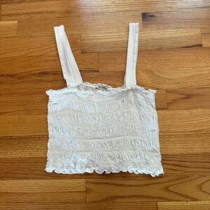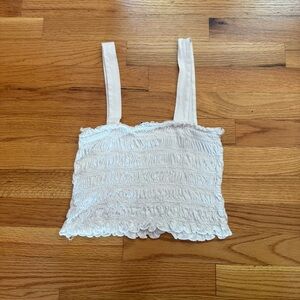 Adorable white ruched tank top by American Eagle Outfitters. Excellent used condition. Slightly cropped fit. Measurements available upon request!