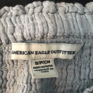 Light blue ruffle tube top from AE! Absolutely beautiful paired with either dark jeans or shorts, very comfortable and fitting!