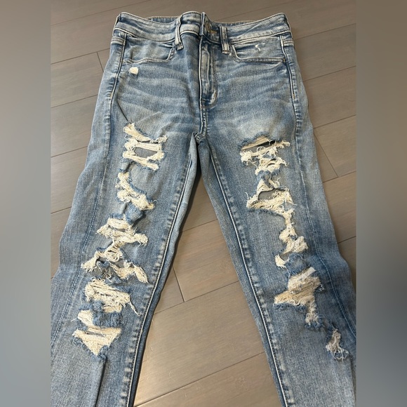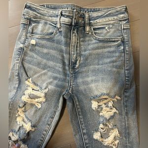 American Eagle size 6 hi rise Jeggings. Super distressed. Excellent condition. Super stretch.