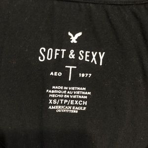 AE Soft & Sexy Black Pocket V-Neck Tee