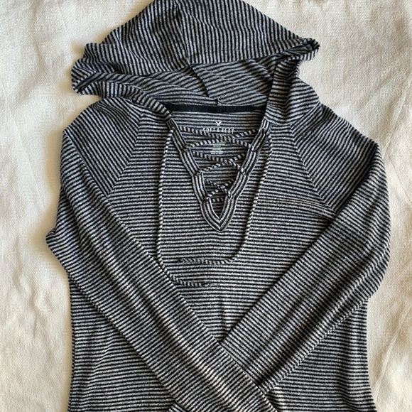 Plush American Eagle soft & Sexy black and white top with a criss cross tie neck. Lightly worn.