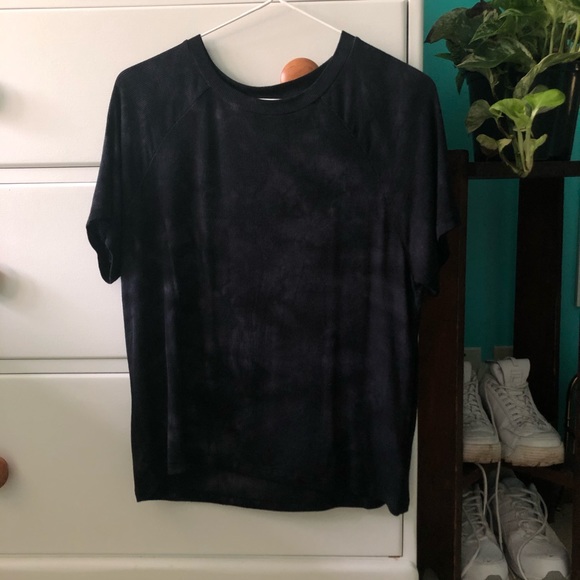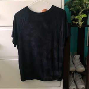 This shirt is super soft and flattering! The tee is black with a grey marbling/tie dye effect. EUC.