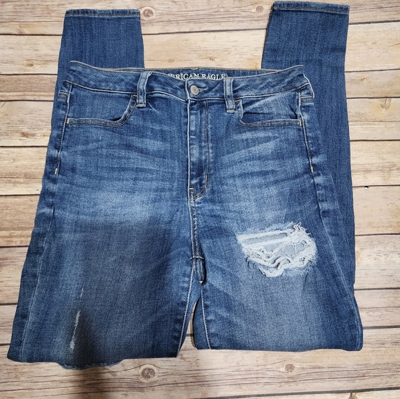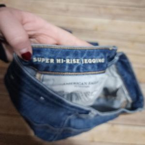 American Eagle Super Hi Rise Jeggings. Medium wash. Light distressing. Perfect condition!