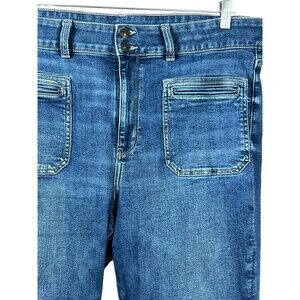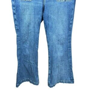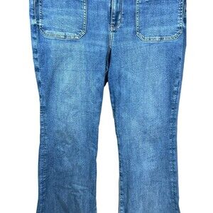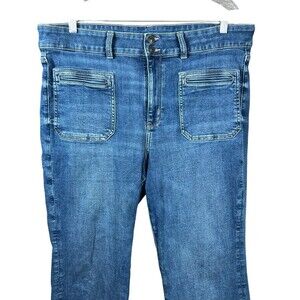 AE Super High Rise Flare Jeans Size 18 Regular Blue Patch Pocket Stretch Denim