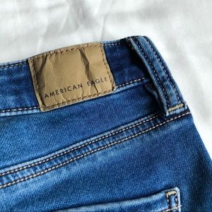 Brand: American Eagle Outfitters Size: 6 Long Color: Blue Vibe Brand new with tags. These jeggings are medium blue with some factory fading. They feature standard button zip closure, belt loops and five pocket design. Material: 85% Cotton, 13% Polyester, 2% Elastane Measurements: Waist: 14” across or 28” around Rise: 10.75” Inseam: 30”