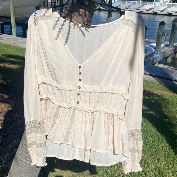 Cream colored top from American Eagle. Lace and ruffle detailing throughout.