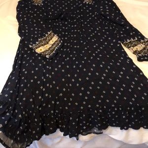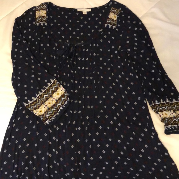 AE boho tunic with tie neck and ruffle bottom. Can be worn with leggings / jeans or as a dress if you’re a little shorter!