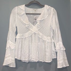 American Eagle White Ruffled Blouse. Never worn before. XS.