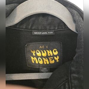 AE Young Money Black Jean Jacket Mens Size Large American Eagle Lil Wayne Drake Nicki Minaj