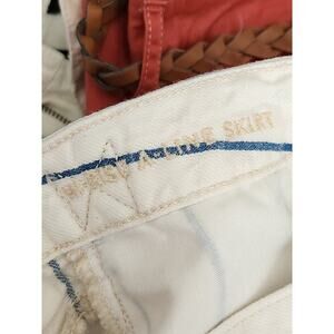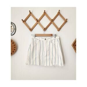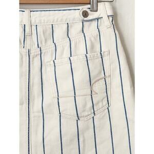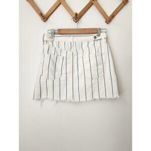 AE cream blue hi rise a line stripe denim skirt raw edge 4 mini