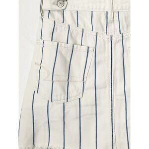 AE cream blue hi rise a line pin stripe denim skirt raw edge 4 mini