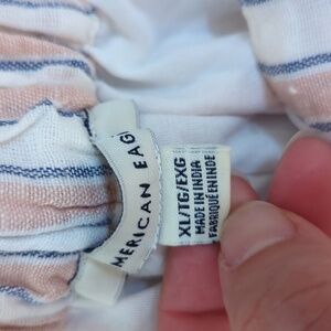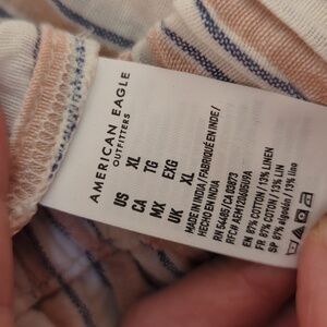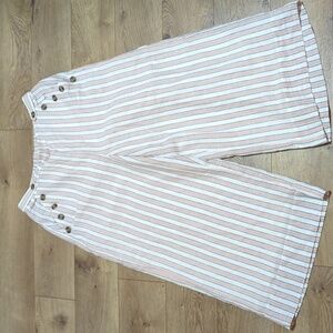 AE high waisted side buttons cullotes linen blend striped pants lined XL
