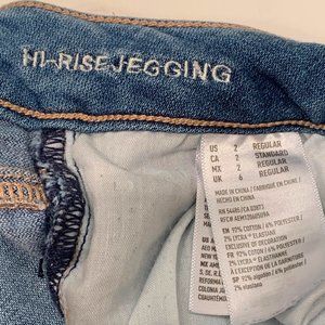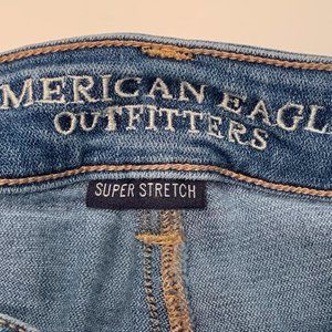 American Eagle Outfitters super stretch high rise jeggings in light wash. Nice condition but would look great DIY distressed too.