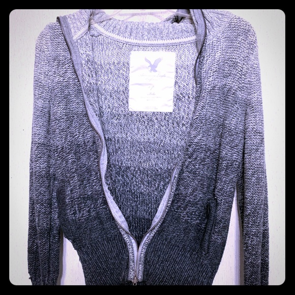 Grey ombré American Eagle jacket. Zipper is upside down on it. Manufacturing default.