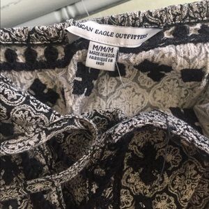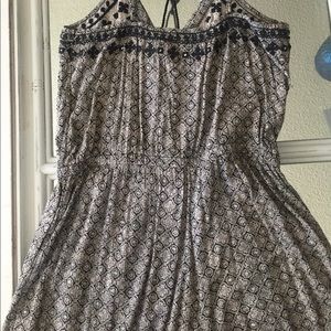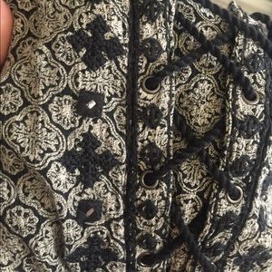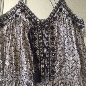 Black embroidered, lace up romper. Lastic in the waistline. It's really nice on and very comfortable! Only wore it once!