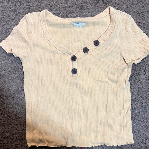 AE yellow Button-Front Ribbed Top
