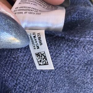 The American Eagle AE77 100% Cashmere Sweater in size SMALL is a stylish and high-quality piece of unisex clothing. Made of luxurious cashmere material in a solid blue color, this pullover sweater is perfect for casual occasions during the winter, fall, and spring seasons. Featuring long sleeves, easy care with machine washable instructions, and a classic pullover style, this sweater is a great gift for anyone looking for a cozy yet fashionable addition to their wardrobe. With its reputable brand and high-quality construction, this sweater is sure to impress.