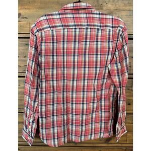 AE77 Premium Brand Shirt Mens Medium Red Blue Plaid Button Up Long Sleeve Casual Western