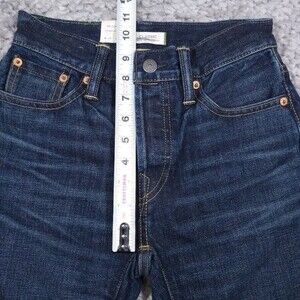 Women's American Eagle AE77 The Classic Japanese Selvedge straight leg mid rise dark wash blue denim jeans. Has a marker ink line on the inside tag as shown, no other flaws. Has back tag but missing retail tag. Tagged size 24 x 30, real measurements shown in photos with jeans laid flat: