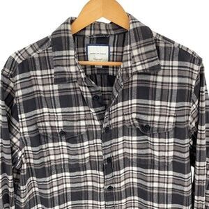 AE American Eagle Super Soft Flannel Plaid Shirt Button Down Gray Size Large