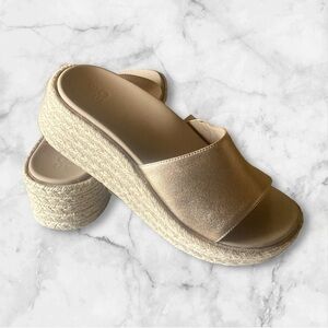 AEBO Metallic Gold Solstice Slide NWT Braided Jute Platform Wedge Women’…