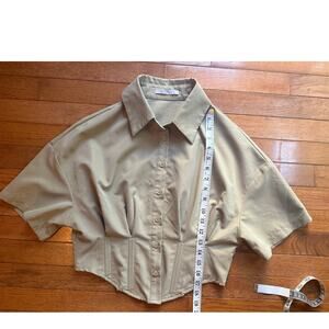 AEL Amy Enjoy Life cropped button down collar shirt Tan Large