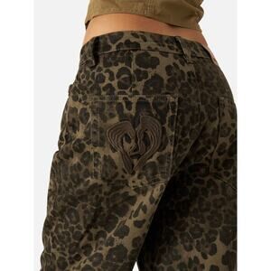 AELFRIC EDEN Leopard Print Wide Leg Jeans Size 4 27 NEW